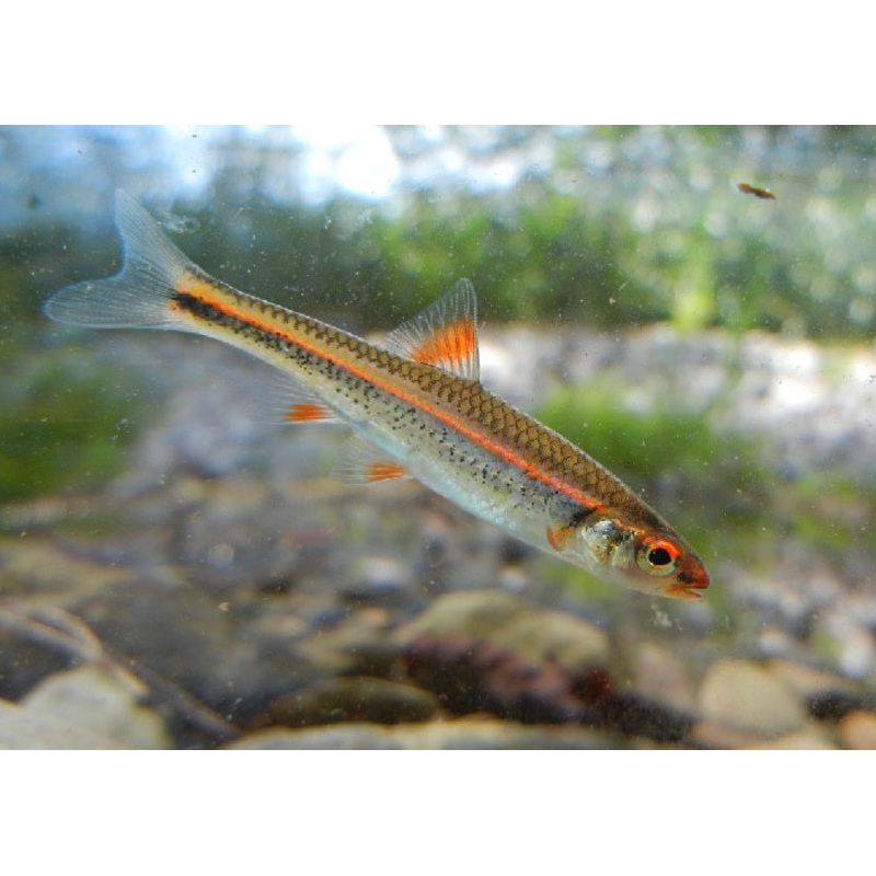 The Rainbow Shiner is a North American species of ray-finned fish in the genus Notropis. The rainbow shiner has a length of 5 to 8 centimeters. It has translucent color from pink to golden with a silver-black stripe along its flanks. The base of its fins are of a reddish color.
